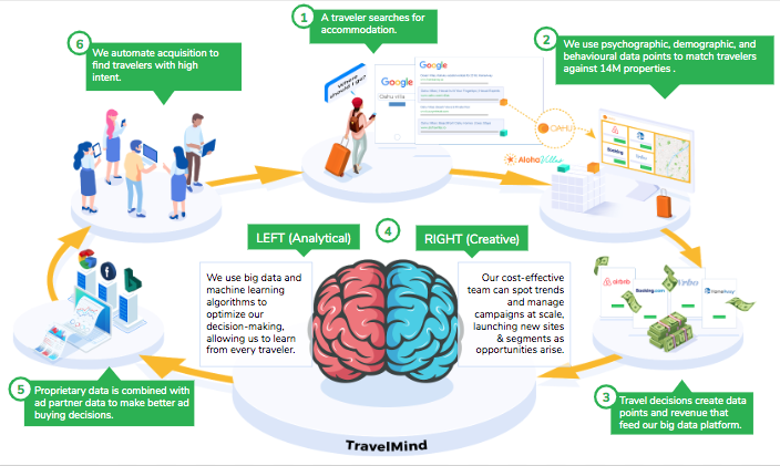 - Next, we use big data and machine learning to learn from the traveler’s buyer’s journey, and the data is fed back into TravelMind. Our experienced team then uses this data, alongside millions of other data points, to spot trends and manage campaigns at scale.