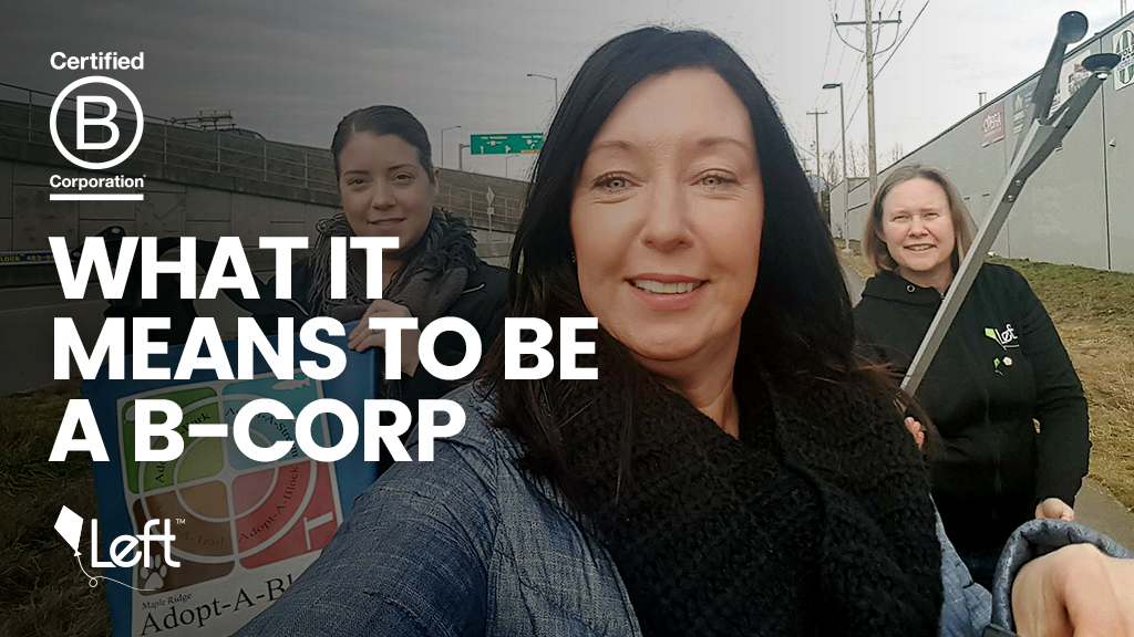 Unlike other organizational certifications, the B Impact Assessment doesn’t only evaluate a product or service, it assesses “the overall positive impact of the company that stands behind it.” This happens through an evaluation and scoring of a business’s impact in five key impact areas: Governance, Workers, Community, Environment, and Customers. To become B-Corp certified, companies must score a total of 80 across all impact areas. Left is proud to have scored 101.